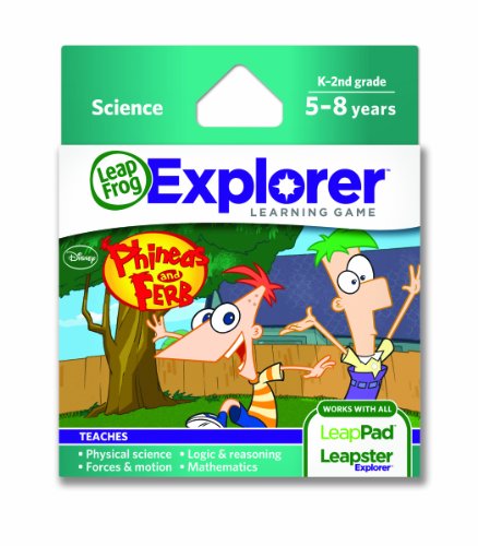 New from LeapFrog, this innovative LeapFrog Explorer learning game helps kids learn science, math, logic & reasoning skills while on an adventure with Ferb. Build the ultimate water balloon launcher to splash Dr. Doofensmirtz' army of french-fry slinging robots! Solve mathematics problems to earn power-ups, build circuits to find spare parts, use your logic and reasoning skills to create engineering blueprints and simple machines to defeat Dr. Doofensmirtz! Appropriate for ages 5-8 years. (Works with LeapPad1 & LeapPad2 learning tablets and Leapster Explorer & LeapsterGS game systems, sold separately.)